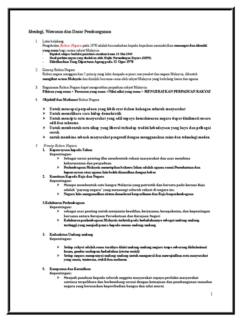 Rukun Negara Sebagai Ideologi Rigkasan Kesimpulan Pengajaran