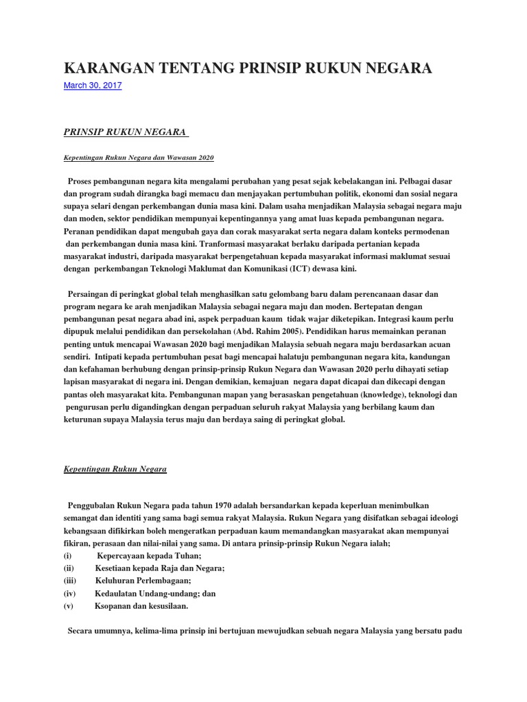 Karangan Tentang Prinsip Rukun Negara Pdf