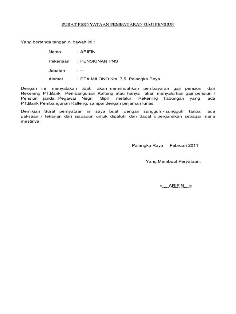 Surat Pernyataan Pembayaran Gaji Pensiun Pdf