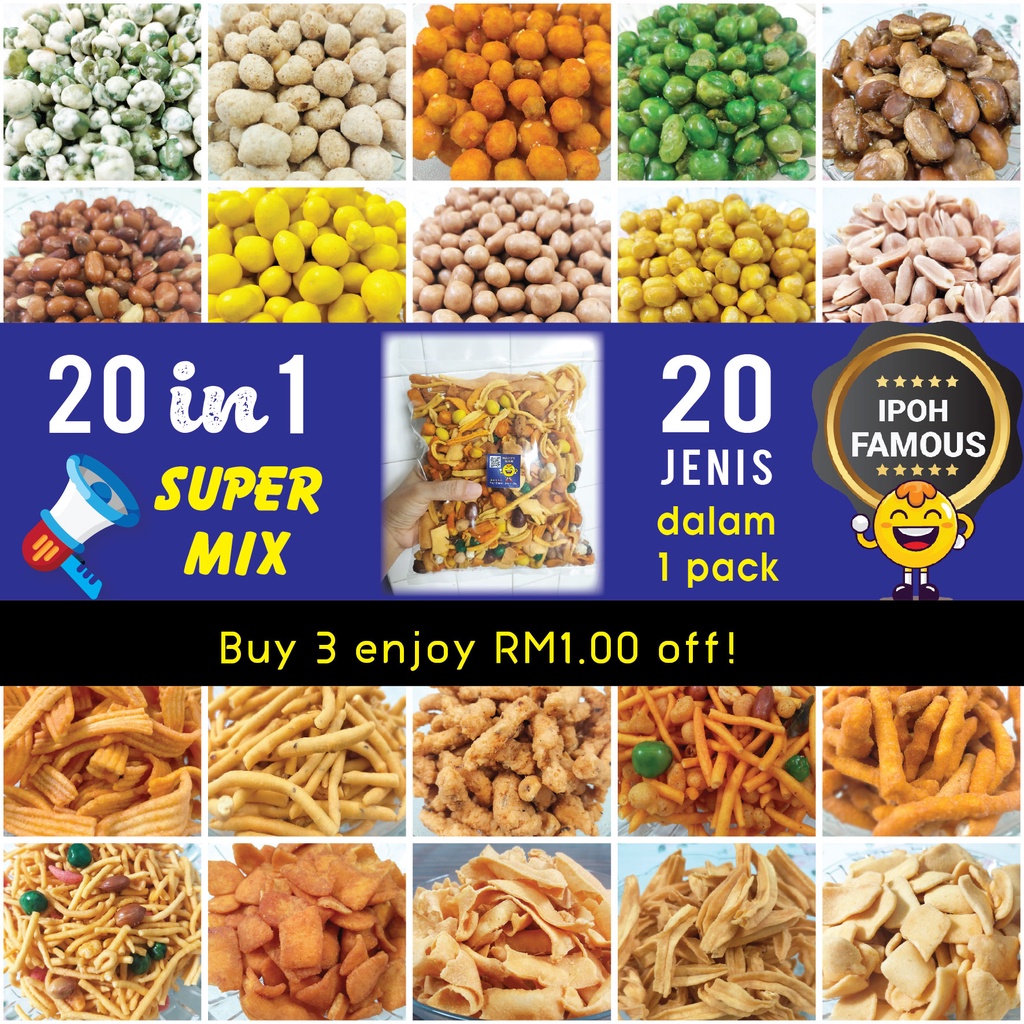 New 20 Jenis Mix Kacang Putih Buntong Ipoh Original Kacang Muruku Makanan Halal Raya Kerepek Ubi Nuts Snacks Food 零食 Shopee Malaysia